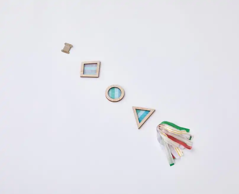 BABYBOXに入っている商品の「タグ」は、浜松市内の細幅織物会社 平織産業さんと、染色加工会社 武藤染工さんの協力で作ることができました。昔ながらのシャトル織機で織り出した「綿テープ」に、手作業で「捺染」をしてもらいました。浜松で培われてきた伝統の技術が光る、BABYBOX Projectならではのタグです。